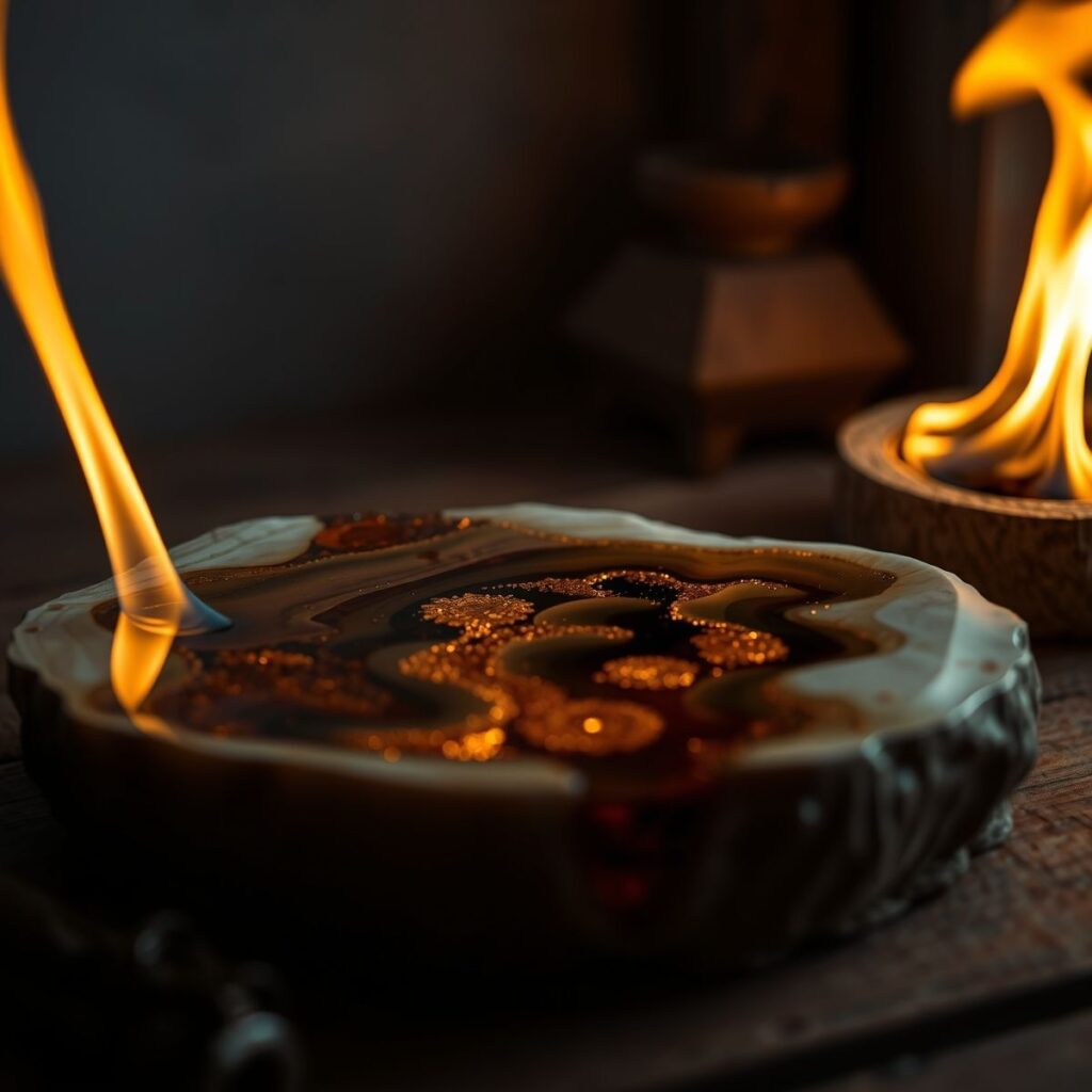 Arte com fogo e resina? É uma técnica inovadora que combina resina epóxi e fogo para criar peças únicas e impactantes.