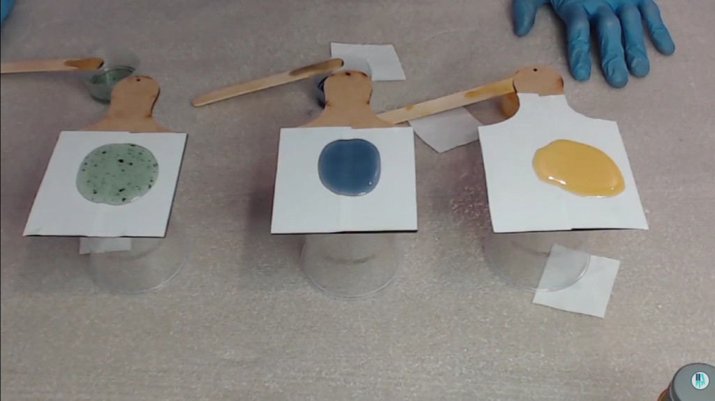 Para entender se realmente dá para colorir resina com Acrilex, foram testados três tipos diferentes de tinta.