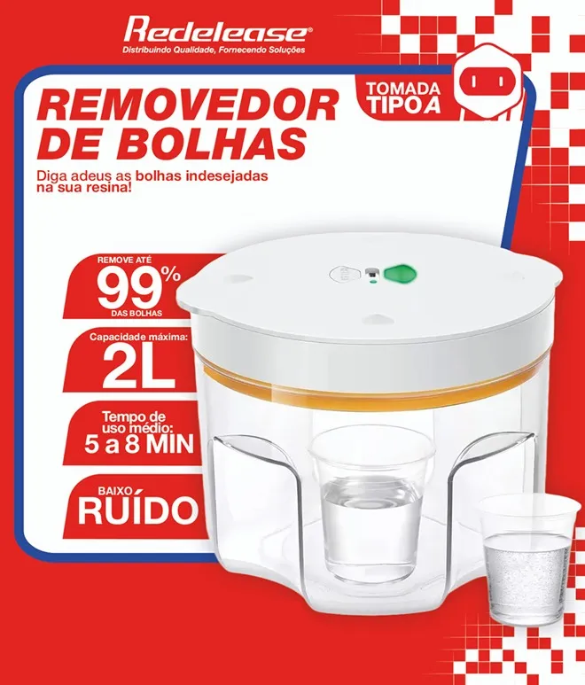 - Visibilidade Total: O corpo em policarbonato transparente permite que você veja a resina “ferver” (o ar saindo) em tempo real, garantindo controle total.