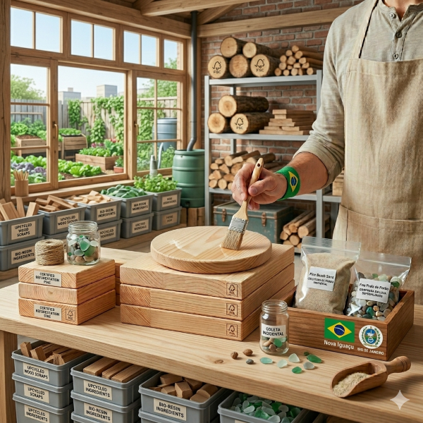Jamais degrade o ecossistema para criar sua arte. Além disso, o uso de madeiras de reflorestamento ou sobras de marcenaria agrega um valor sustentável imenso à sua marca “Mar de Resina”.